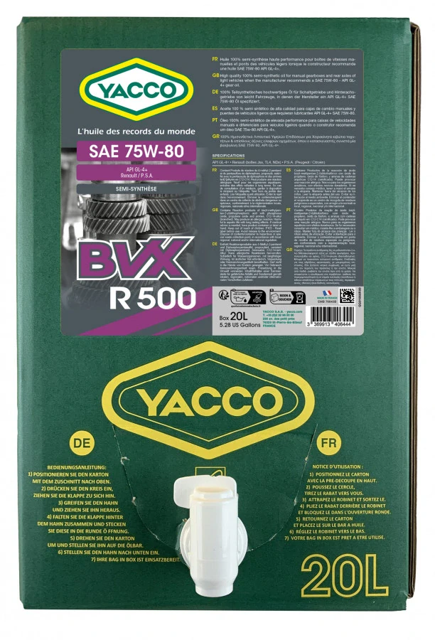 Yacco BVX R500 75W-80 *20lSklademKč 5 600/ ksKč 4 628 bez DPH