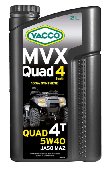 který lze používat za všech provozních podmínek (sport, profesionální nebo rekreační). Poskytuje zvláštní ochranu převodovky a mokré spojky a zlepšuje řazení. Překračuje požadavky hlavních výrobců čtyřkolek. Specifické třecí vlastnosti poskytují vynikající ovládání spojky· Vynikající ochrana proti opotřebení součástí motoru a převodových komponentů pro delší životnost. SAE 5W-40 viskozita umožňuje vynikající průtok oleje a zlepšuje starty při nízkých teplotách. Dobré detergentní / disperzní vlastnosti zabránňují vzniku úsad a udržují motor v čistotě. Vysoká pevnost ve střihu zajišťuje optimální stabilitu oleje během provozu. Nízký obsah fosforu pro zvýšenou ochranu katalyzátorů.